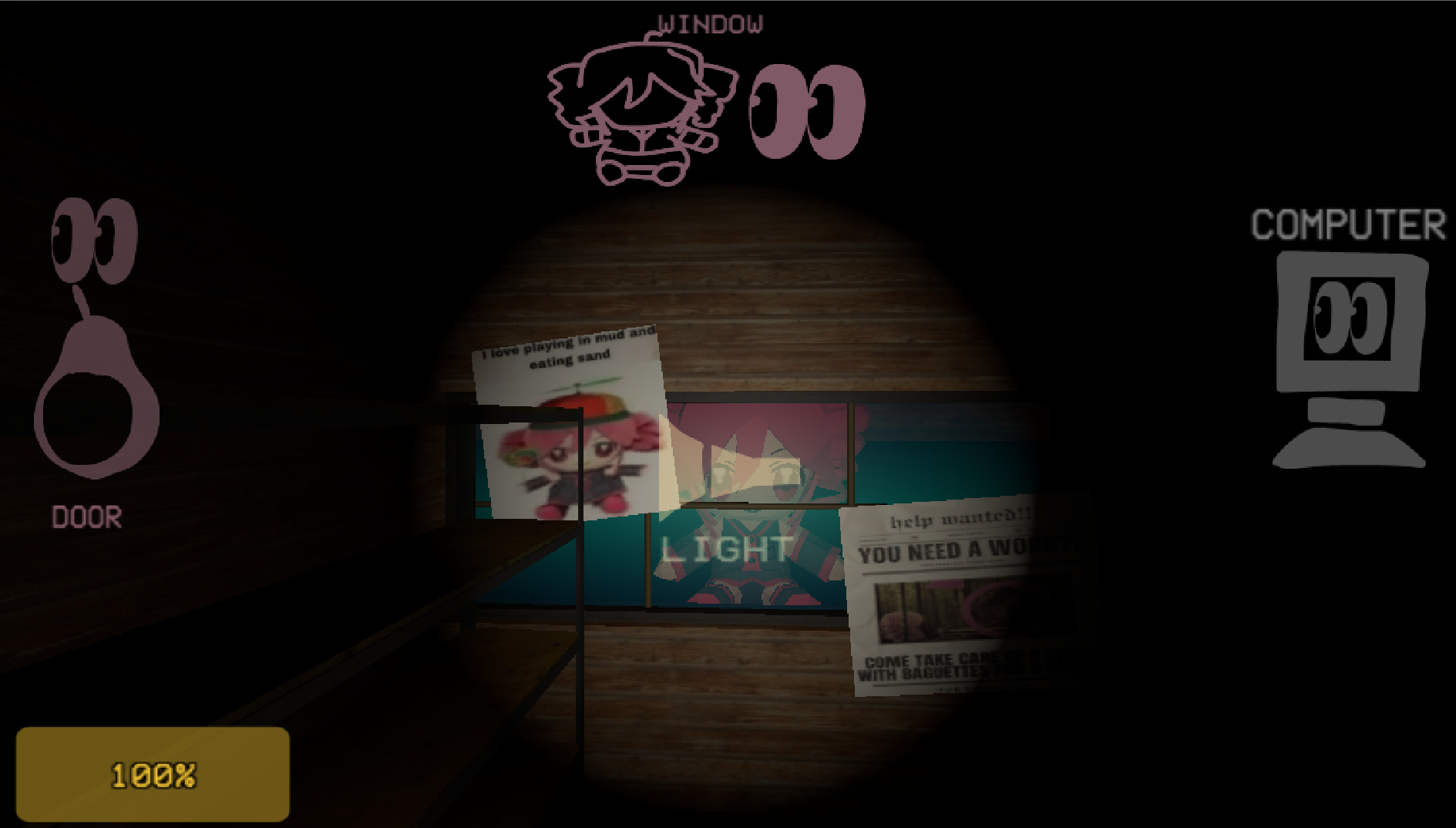The Pear and the Plushie will attack you through the window and the door. Just flash them to stop them.